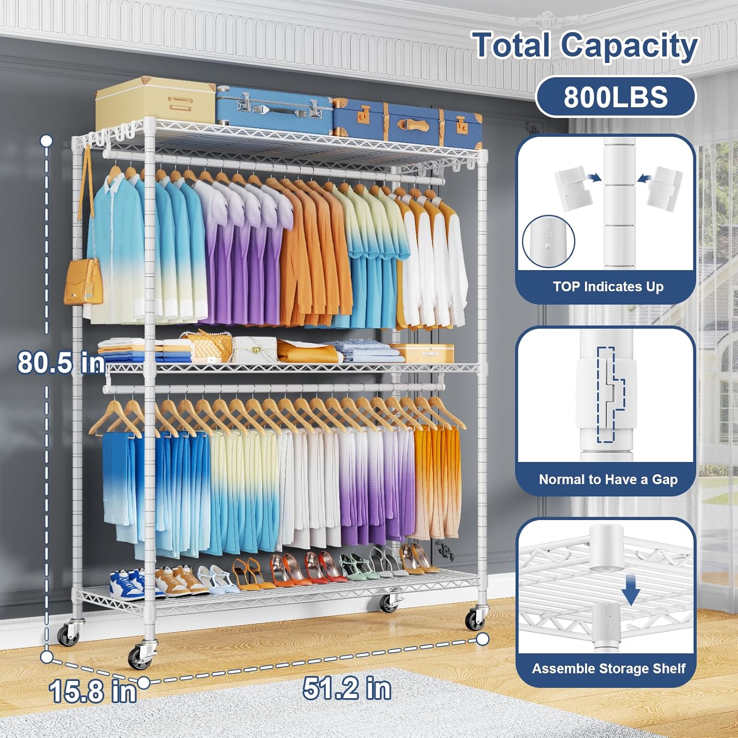 | Included Components | 3*Shelf,4*Lower Pole,4*Upper Pole,2*Clothes Hanger Rod,4*Hook Bracket,4*Screw,8*Hooks,28*Plastic Clips,1 Set*Wheels,2 Sets*Anti-tip Device |